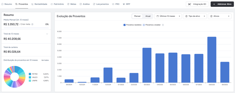 Alocação inteligente entre ativos como renda fixa, ações, fundos, previdência e outros
